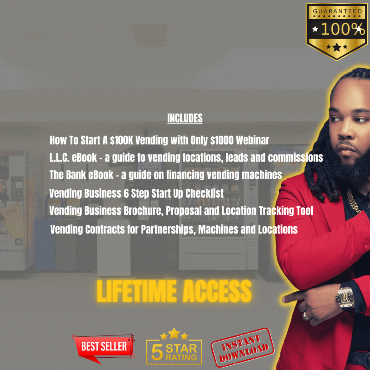 My Do-It-Yourself Vending Course is the exact step-by-step guide worth over $1500 that will reveal everything you need to know, from picking the best locations to best-selling drinks and snacks, so you can start making more money than EVER BEFORE!